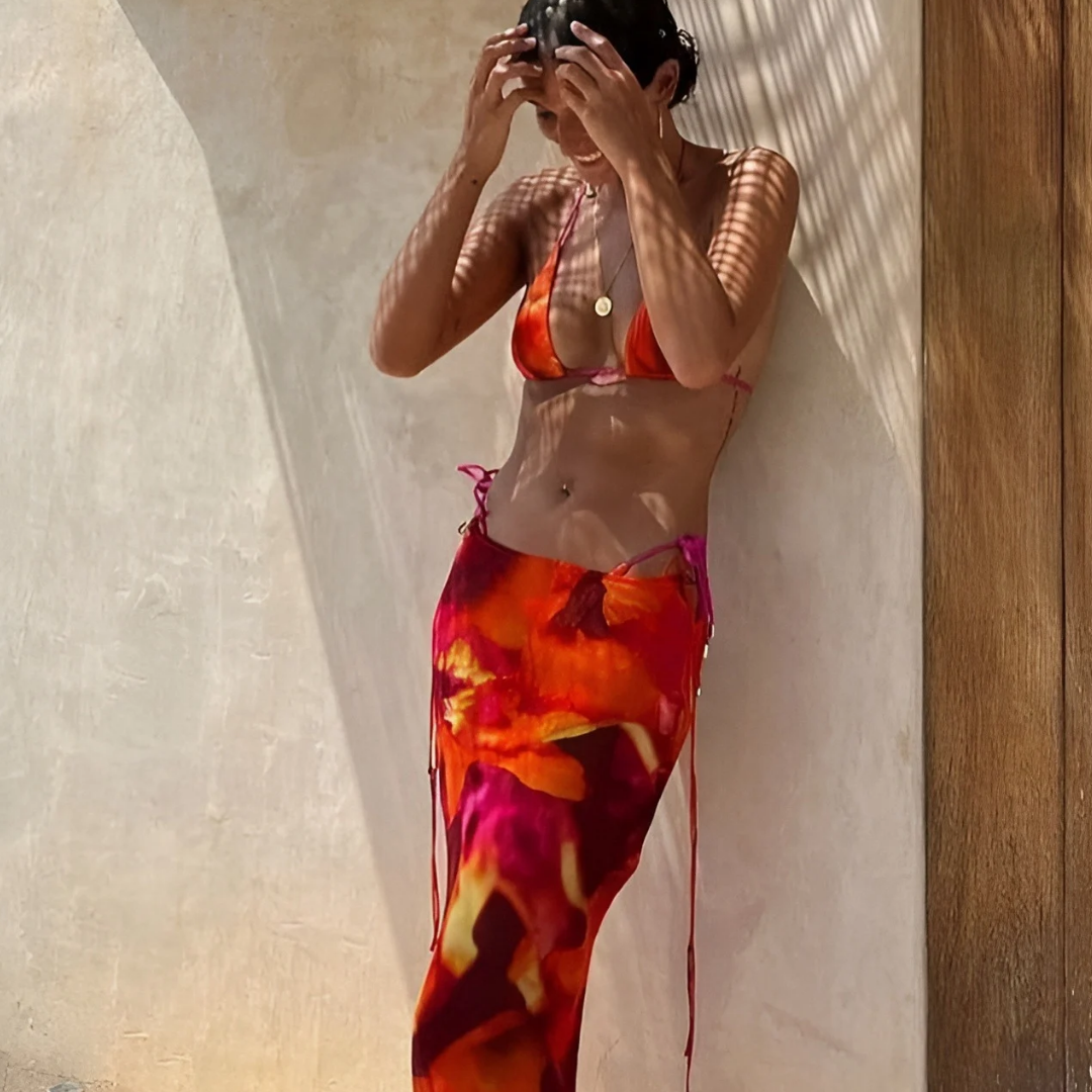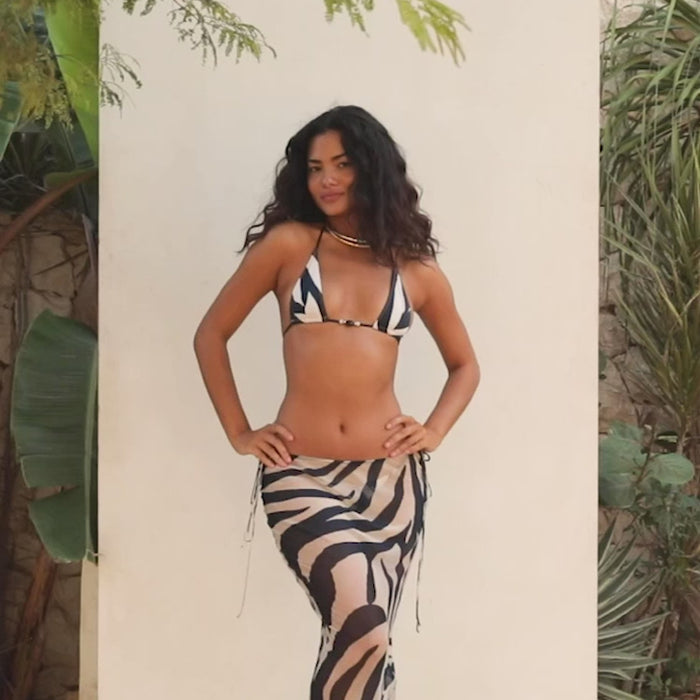 Zebra Chic: Schwarzer und weißer Zebra-Rock mit passendem Bikini